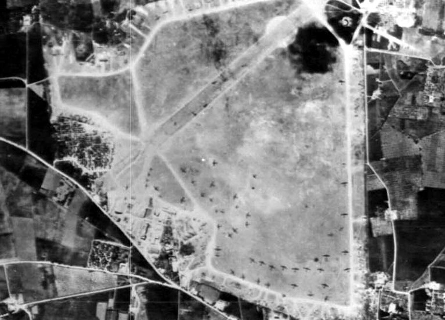 Trapani-Milo airfield as captured in a bomb damage photo taken by Army Air Corps aircraft in July 1943.