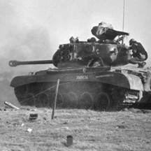 "Tip of the Spear" by Gareth Hector depicts Clarence's Pershing, "Eagle 7," as it passes the burning Panther tank, near the Cologne cathedral. Prints are available at Valor Studios hand autographed by Clarence & his fellow tankers!